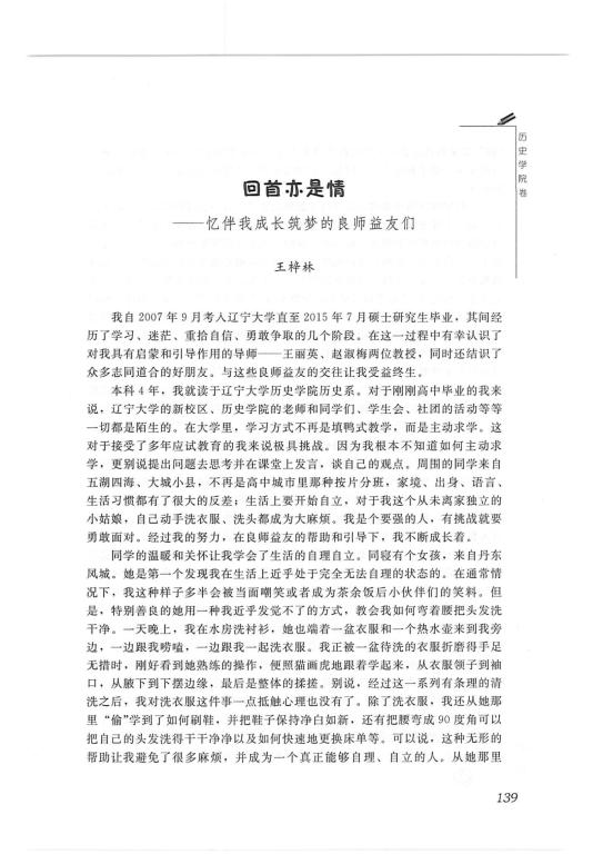王梓林-(07级本科)-《回首亦是情—忆伴我成长筑梦的良师益友们〉